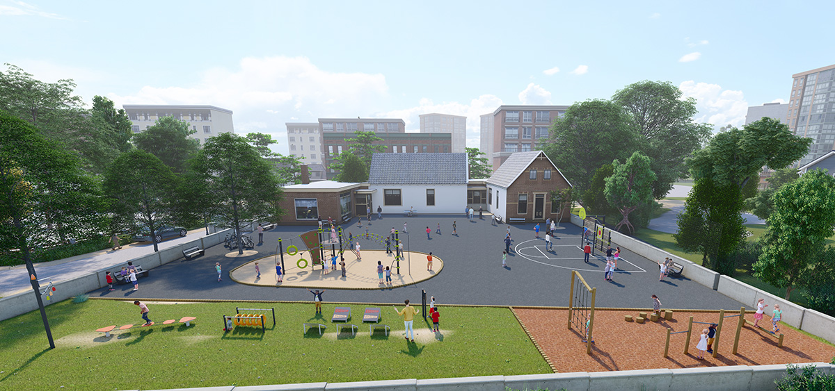 The various fun-sport structures arranged within the school playground help support the children’s play-based learning and provide teachers with great facilities.
