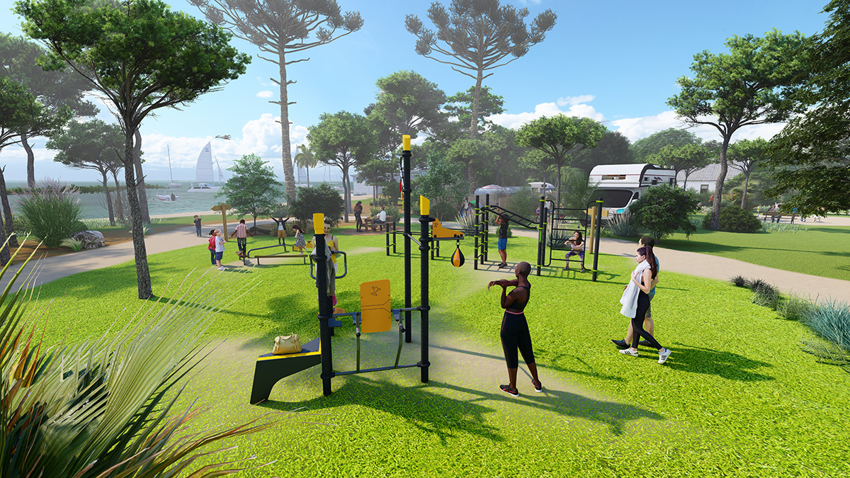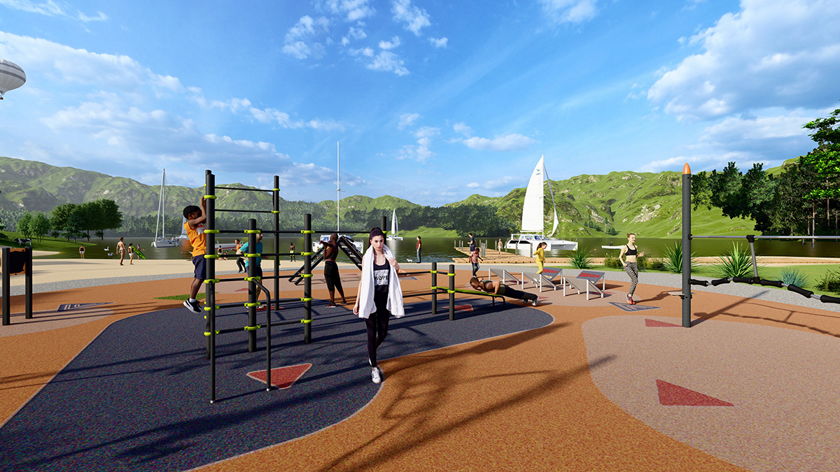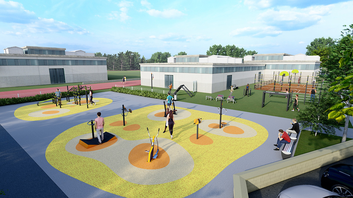 The site is developing its full sports potential with an outdoor fitness area adjacent to the town’s gym.