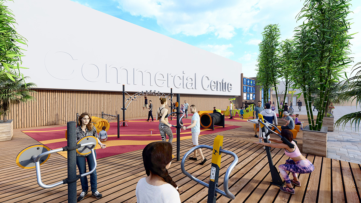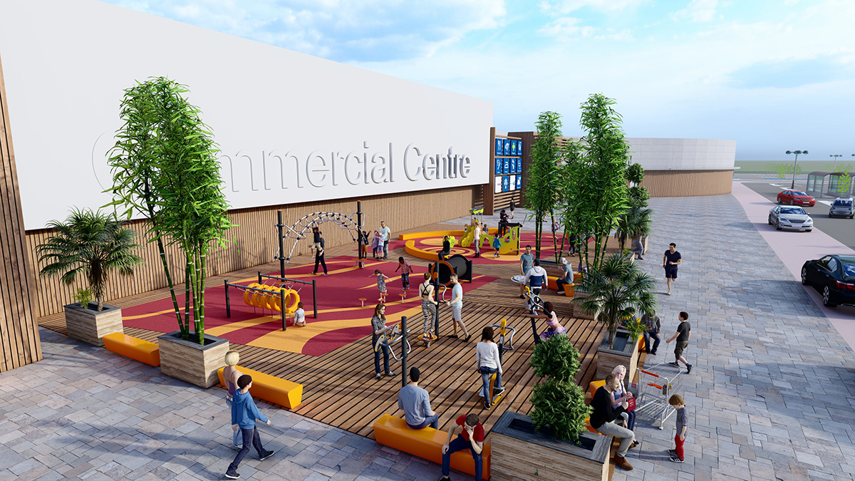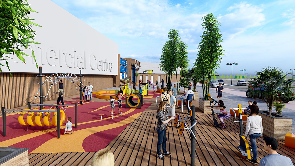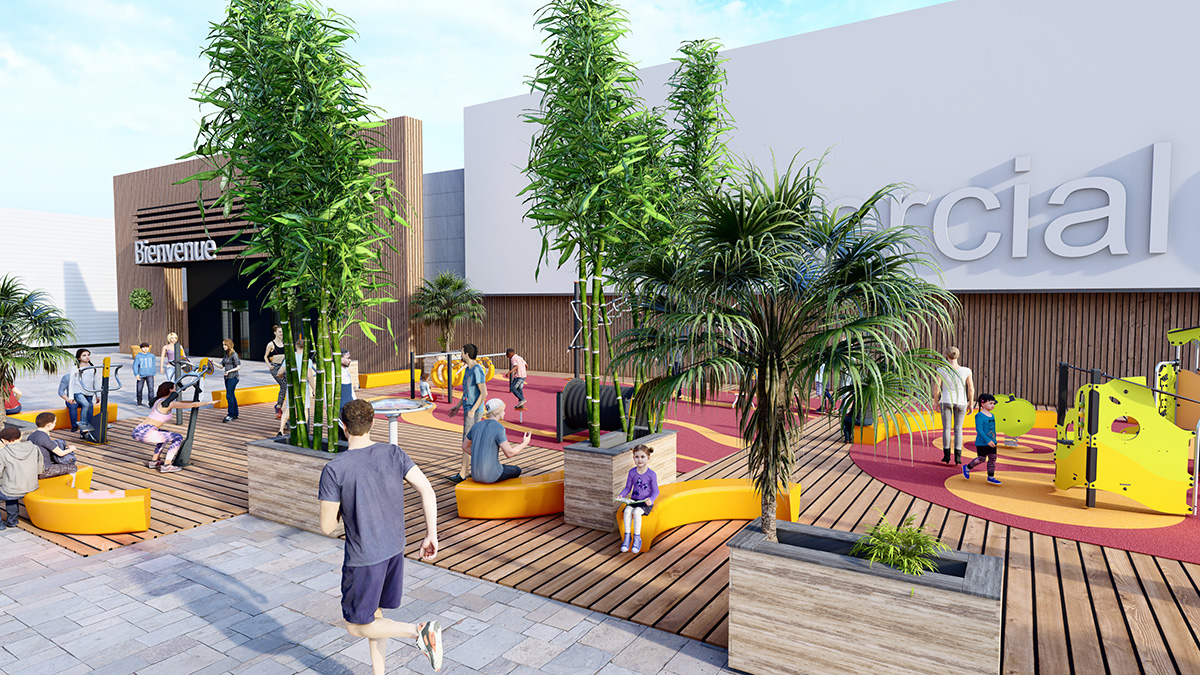 The creation of a fun sports area with structures designed for a wide range of users as well as the furniture makes the shopping centre a more attractive destination. From a sales retail space, it becomes a place of friendly interaction that encourages the whole family to visit, spend time and return.