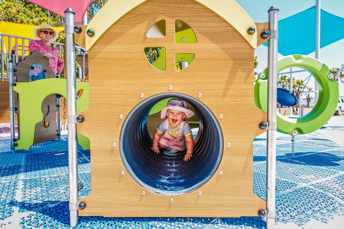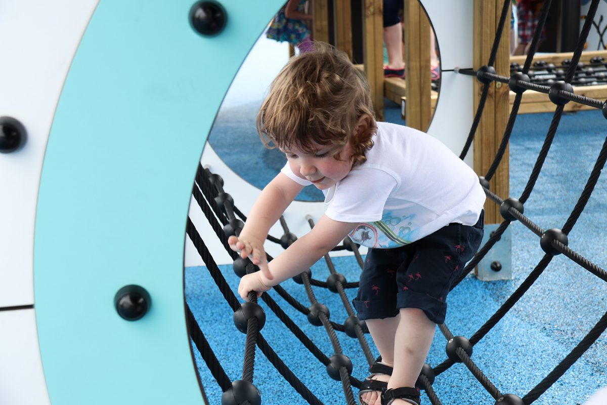 Crawling through a tunnel in an outdoor play structure also calls for a certain amount of courage : children need to overcome their apprehension to make their way through a relatively long and dark space.
