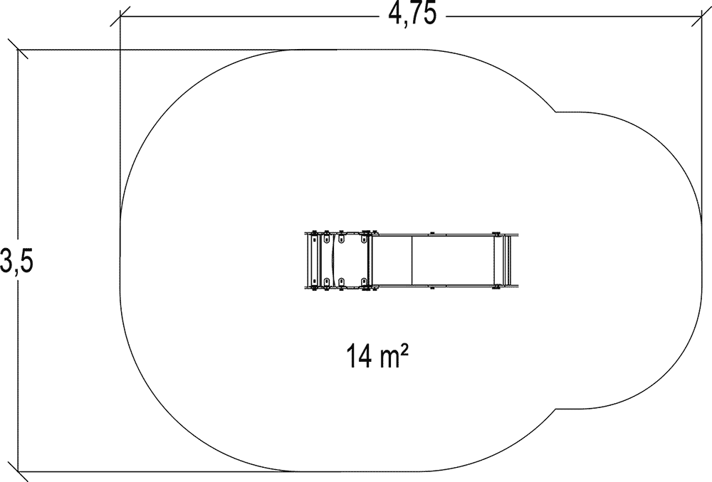 The size of the module is: 1.75 m length, 0.46 m width, 1.30 m. high. The free fall height (FFH) is 1.00 m.