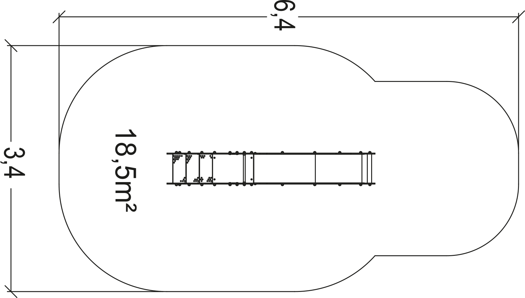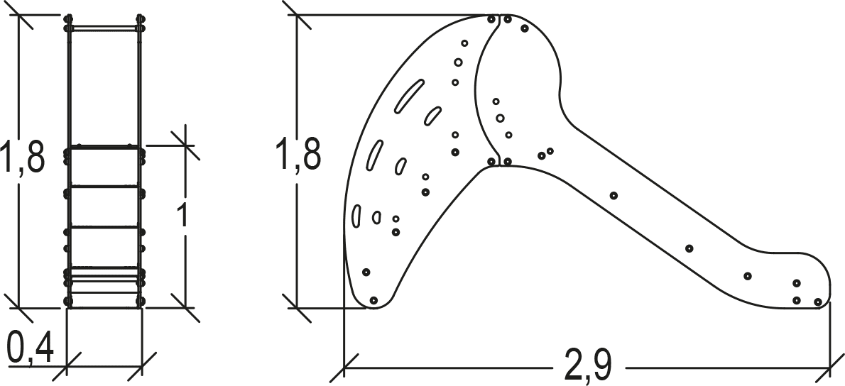 The size of the module is: 2.90 m length, 0.47 m width, 1.75 m. high. The free fall height (FFH) is 1.00 m.