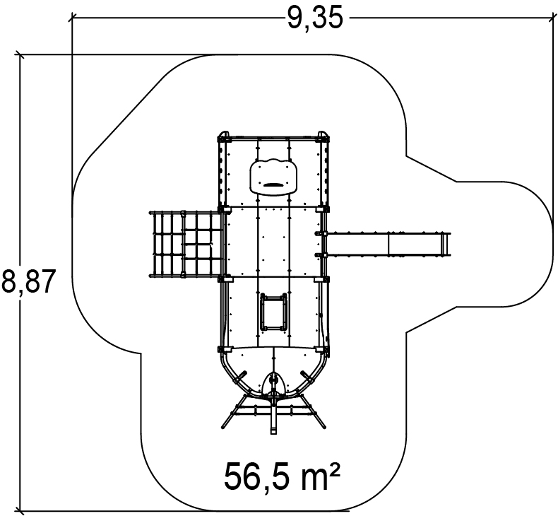 The size of the module is: 5.87 m length, 5.86 m width, 3.00 m. high. The free fall height (FFH) is 1.37 m.