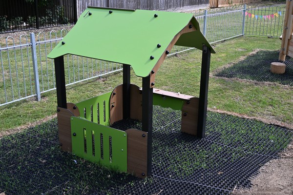 Cubby House - Timber-look playhouse with seating and shelter - J235®