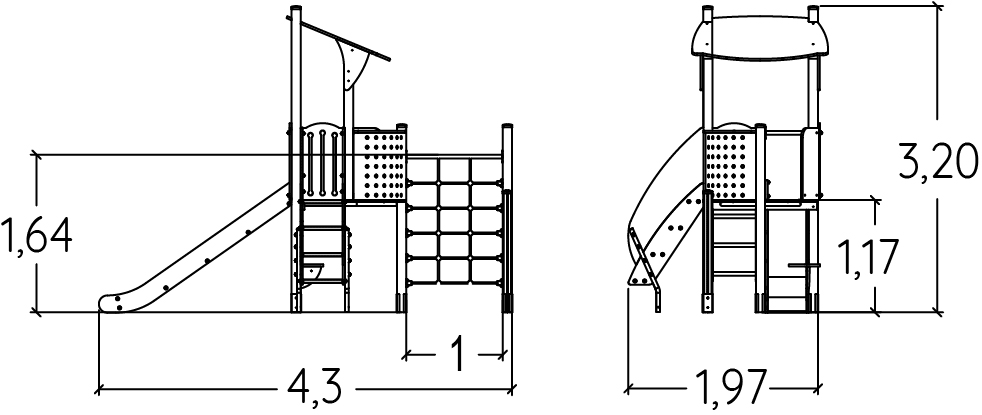 The size of the module is: 4.30 m length, 1.97 m width, 3.20 m. high. The free fall height (FFH) is 1.70 m.