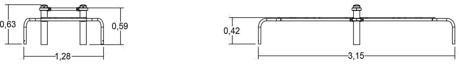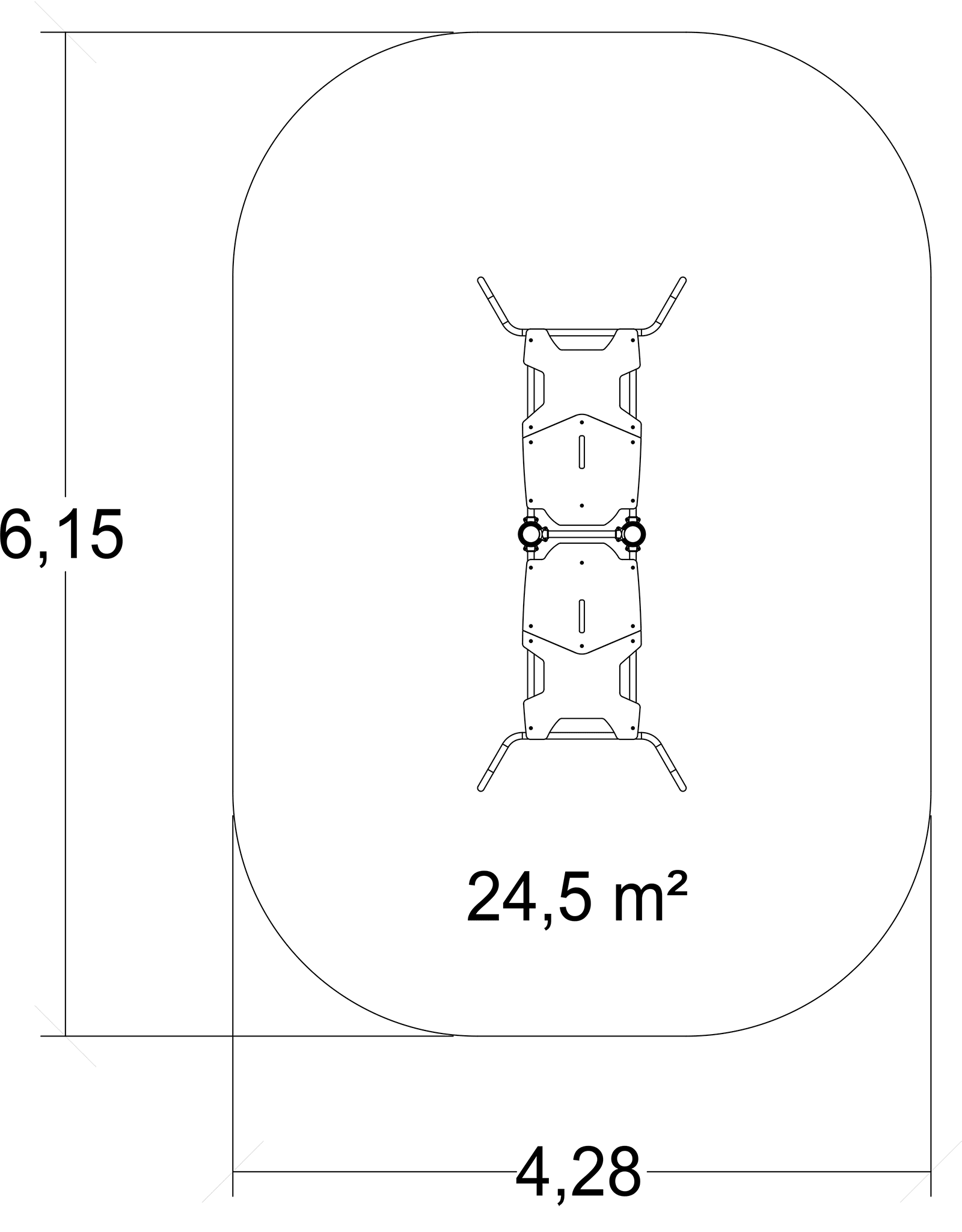 The size of the module is: 3.15 m length, 1.28 m width, 0.64 m. high. The free fall height (FFH) is 0.60 m.