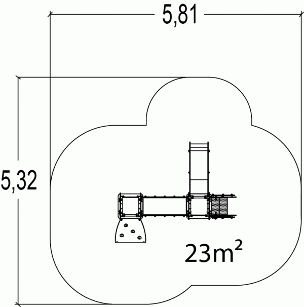 The size of the module is: 2.81 m length, 2.32 m width, 2.11 m. high. The free fall height (FFH) is 1.00 m.