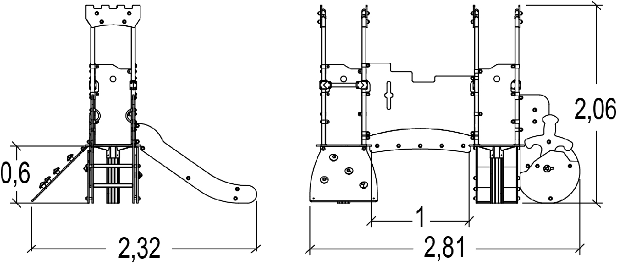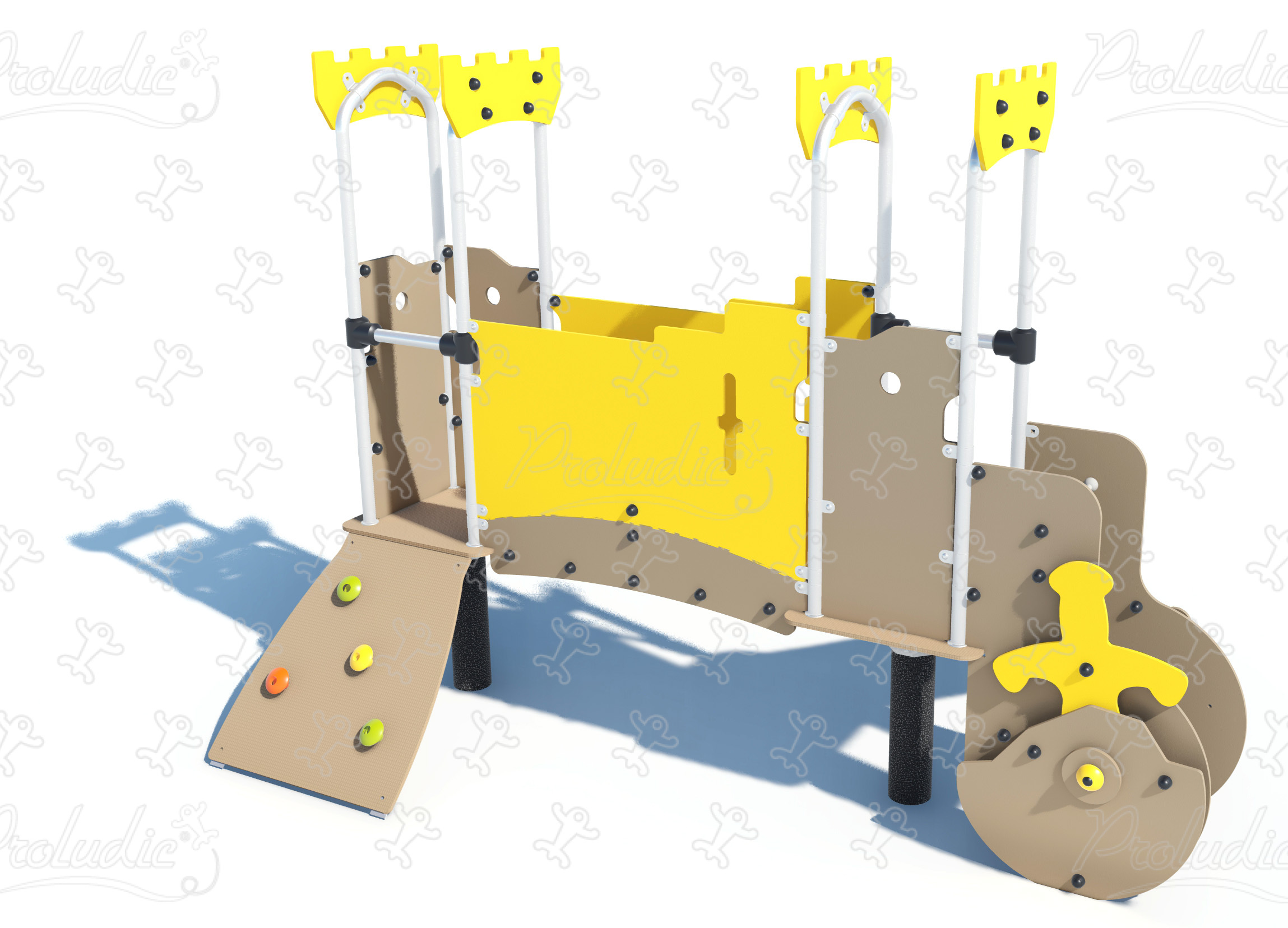 Castle Wall - Multiplay equipment with slide and climbing activities - J38402