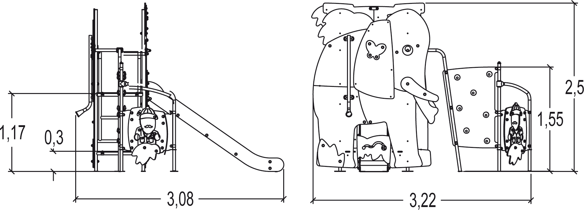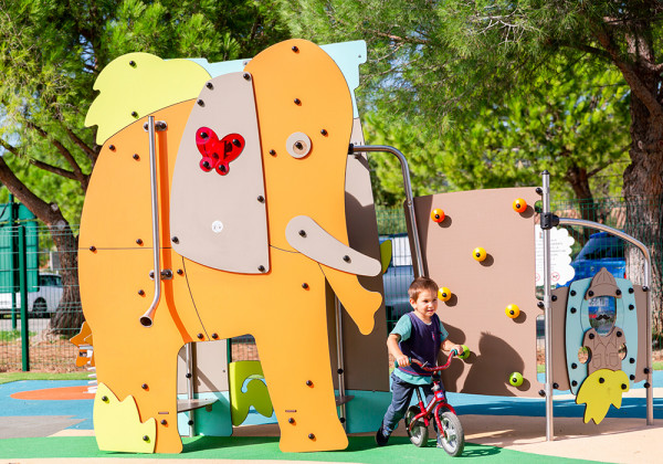Elephant - Multiplay equipment with slide, play panel, and climbing activities - J4041
