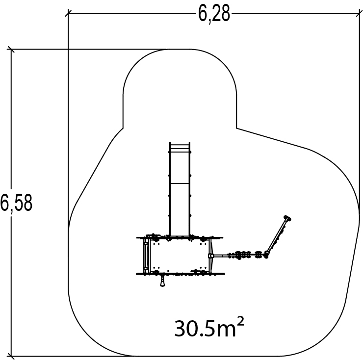 The size of the module is: 3.25 m length, 3.08 m width, 2.50 m. high. The free fall height (FFH) is 1.80 m.
