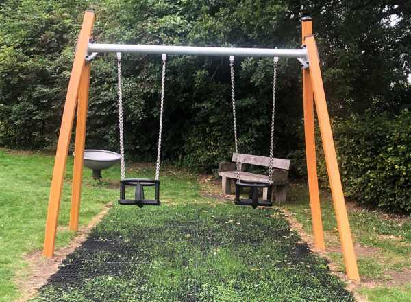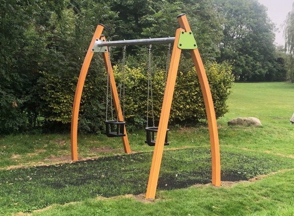 Swing set with 2 cradle seats in timber-look colour - J434-C®