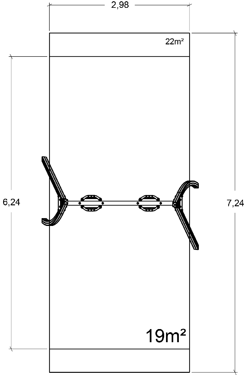 The size of the module is: 3.34 m length, 1.98 m width, 2.60 m. high. The free fall height (FFH) is 1.33 m.