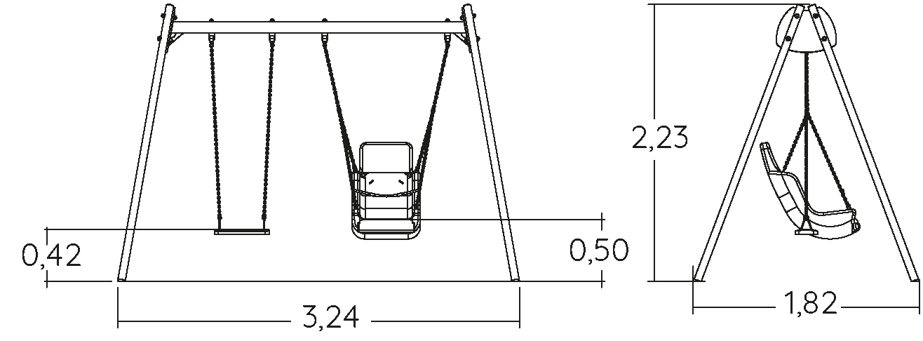 Swing set with 1 flat seat and 1 boat seat - J439