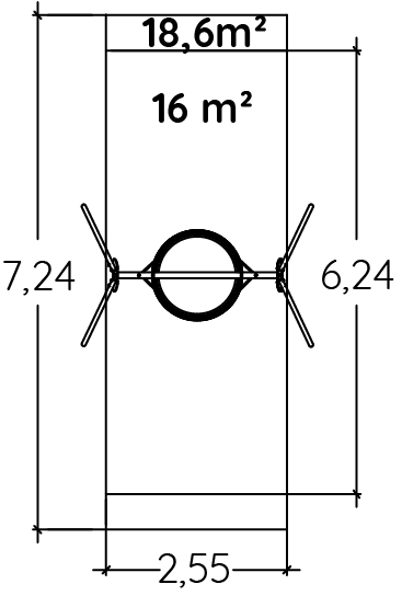 The size of the module is: 3.37 m wide, 2.10 m. deep, 2.60 m. high. The free fall height (FFH) is 1.55 m.