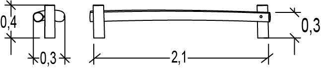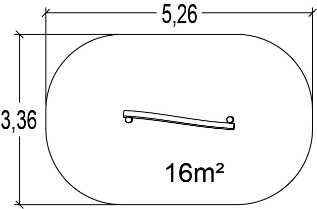 The size of the module is: 2.10 m length, 0.30 m width, 0.40 m. high. The free fall height (FFH) is 0.60 m.