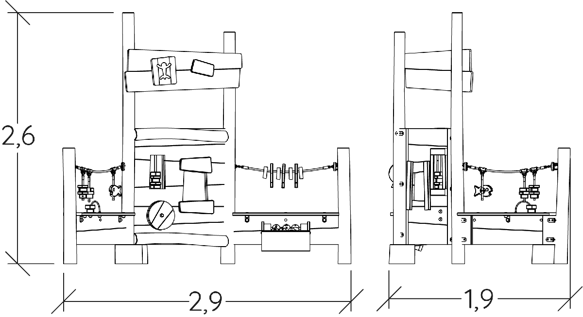 The size of the module is: 2.90 m length, 1.90 m width, 2.60 m. high. The free fall height (FFH) is 0.60 m.