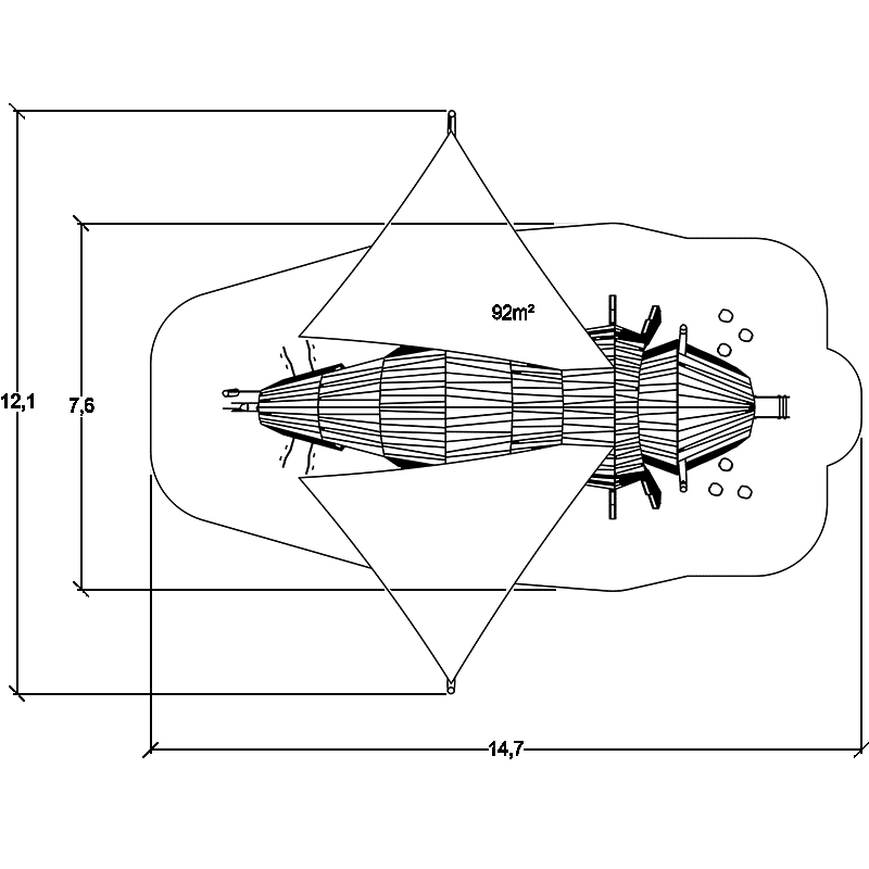 The size of the module is: 11.93 m length, 12.05 m width, 4.03 m. high. The free fall height (FFH) is 1.50 m.