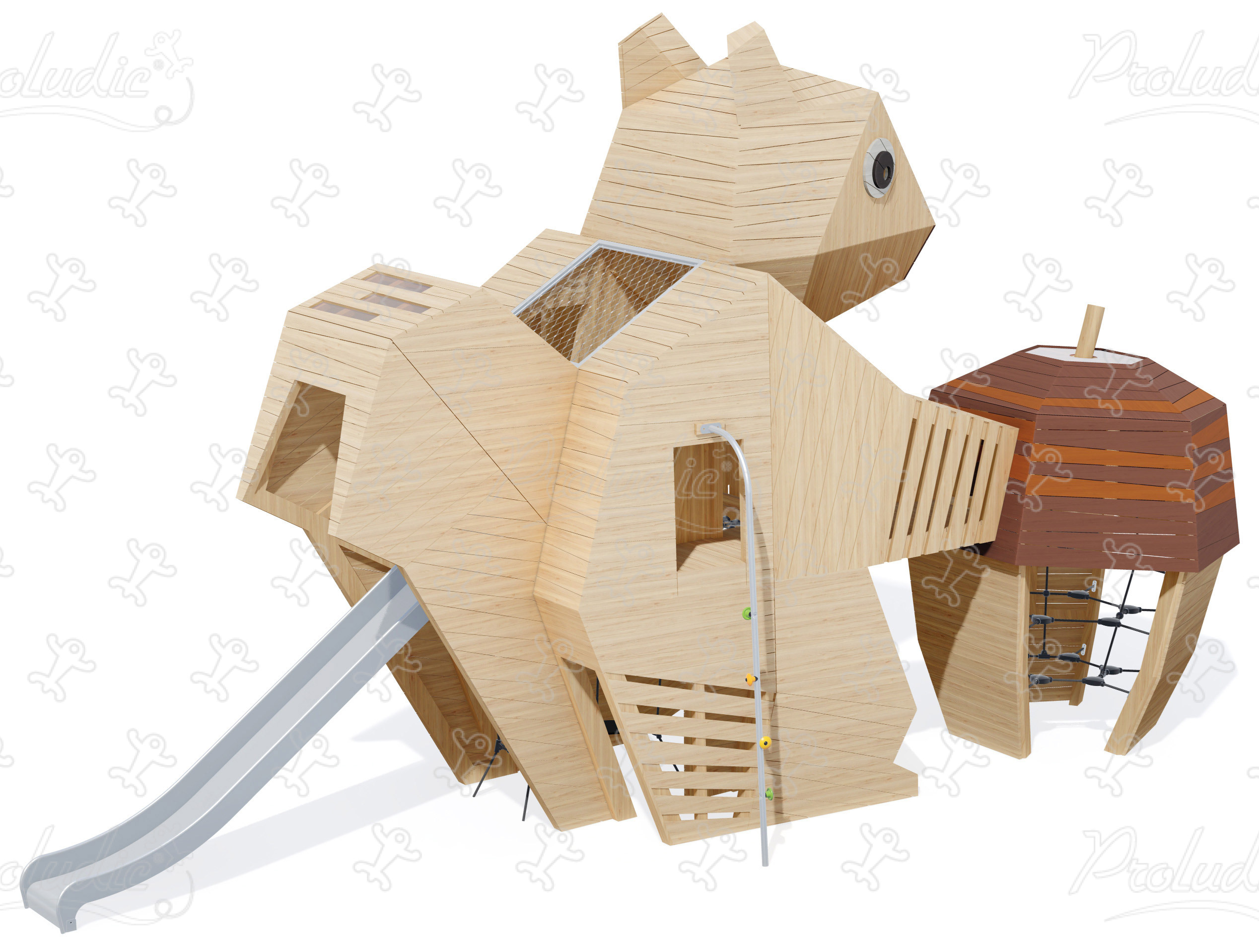 Giant multi-activity wooden play structure with slide - Squirrel - J49196®