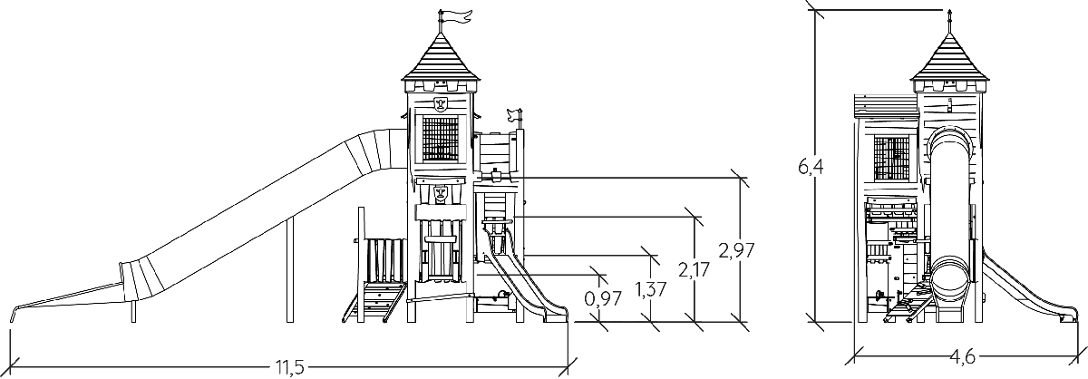 Manor House - Wooden playground equipment with giant tower and tube slide - J49201®