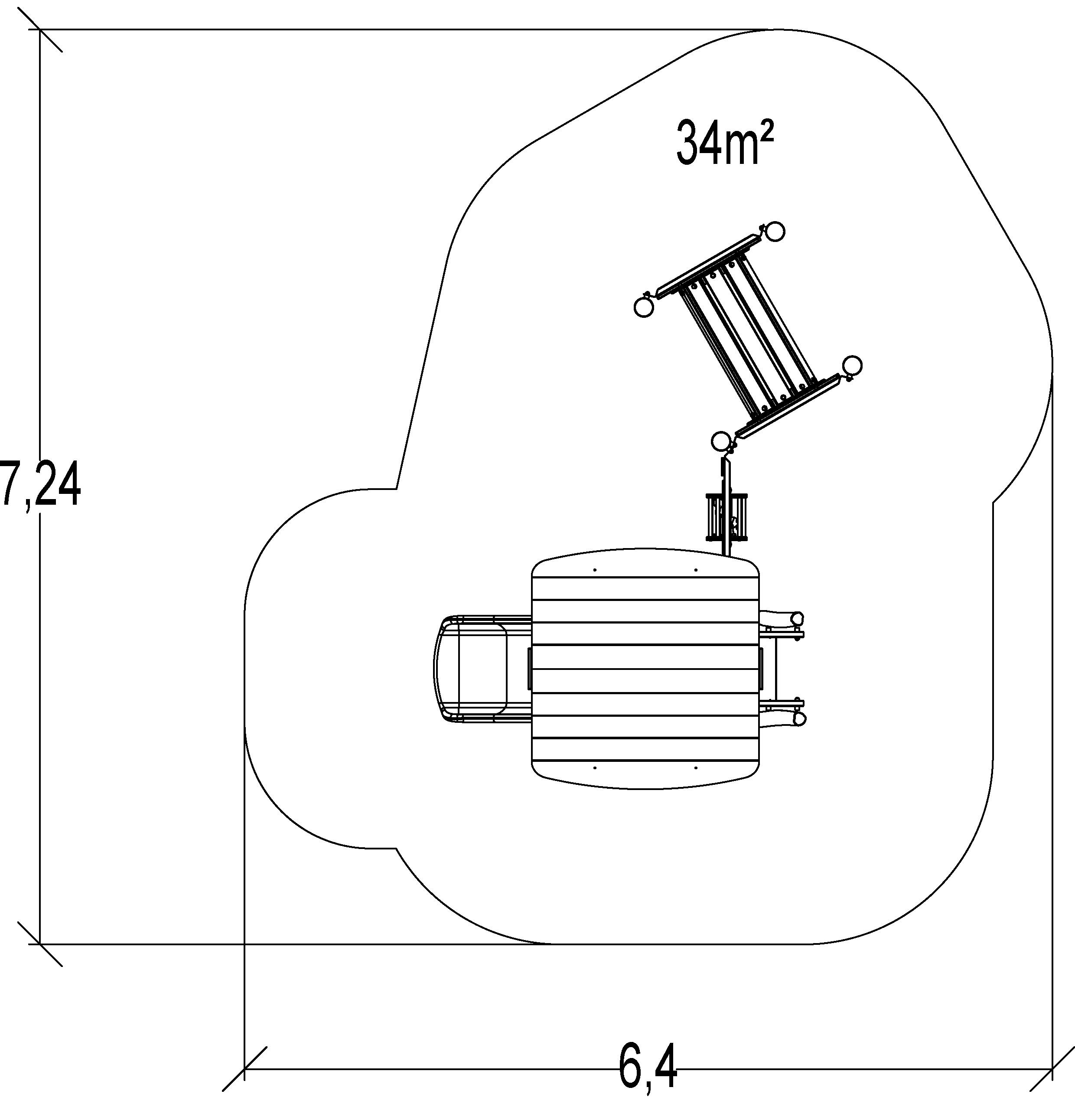 The size of the module is: 4.45 m length, 3.40 m width, 2.66 m. high. The free fall height (FFH) is 1.00 m.