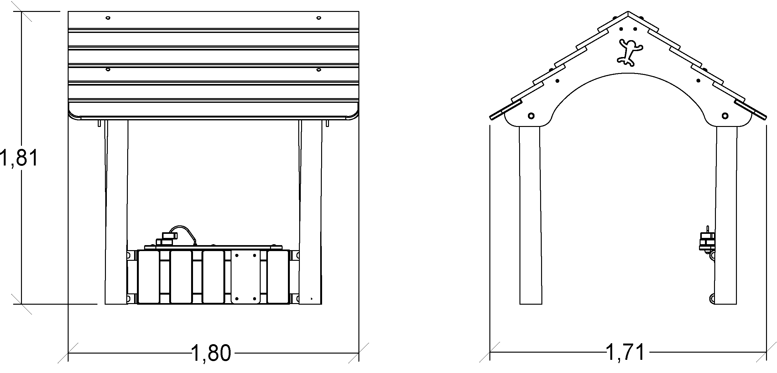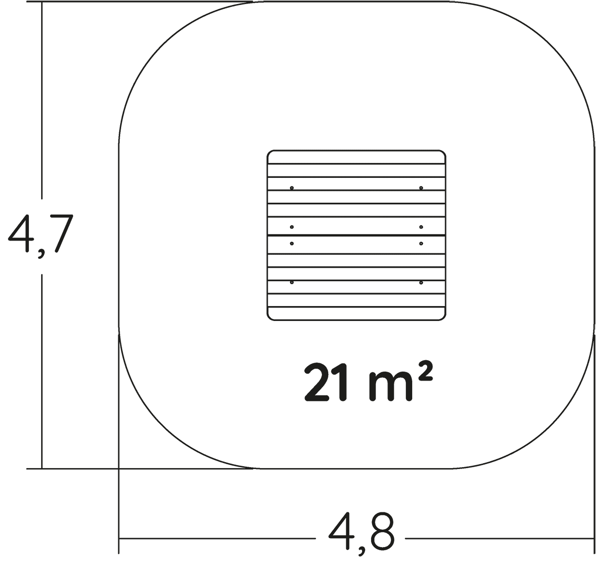 The size of the module is: 1.80 m length, 1.71 m width, 1.82 m. high. The free fall height (FFH) is 0.60 m.