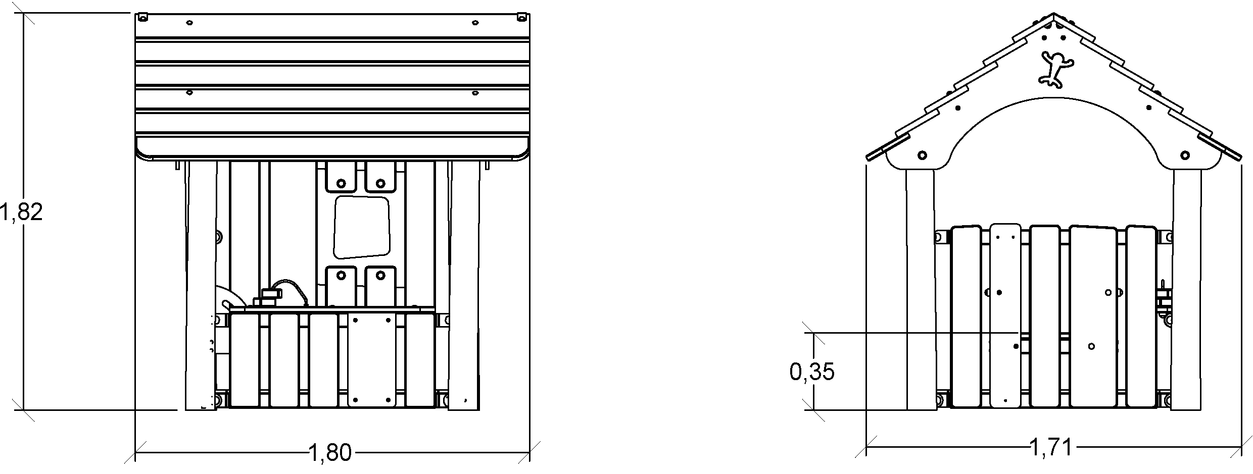 The size of the module is: 1.80 m length, 1.71 m width, 1.82 m. high. The free fall height (FFH) is 0.60 m.