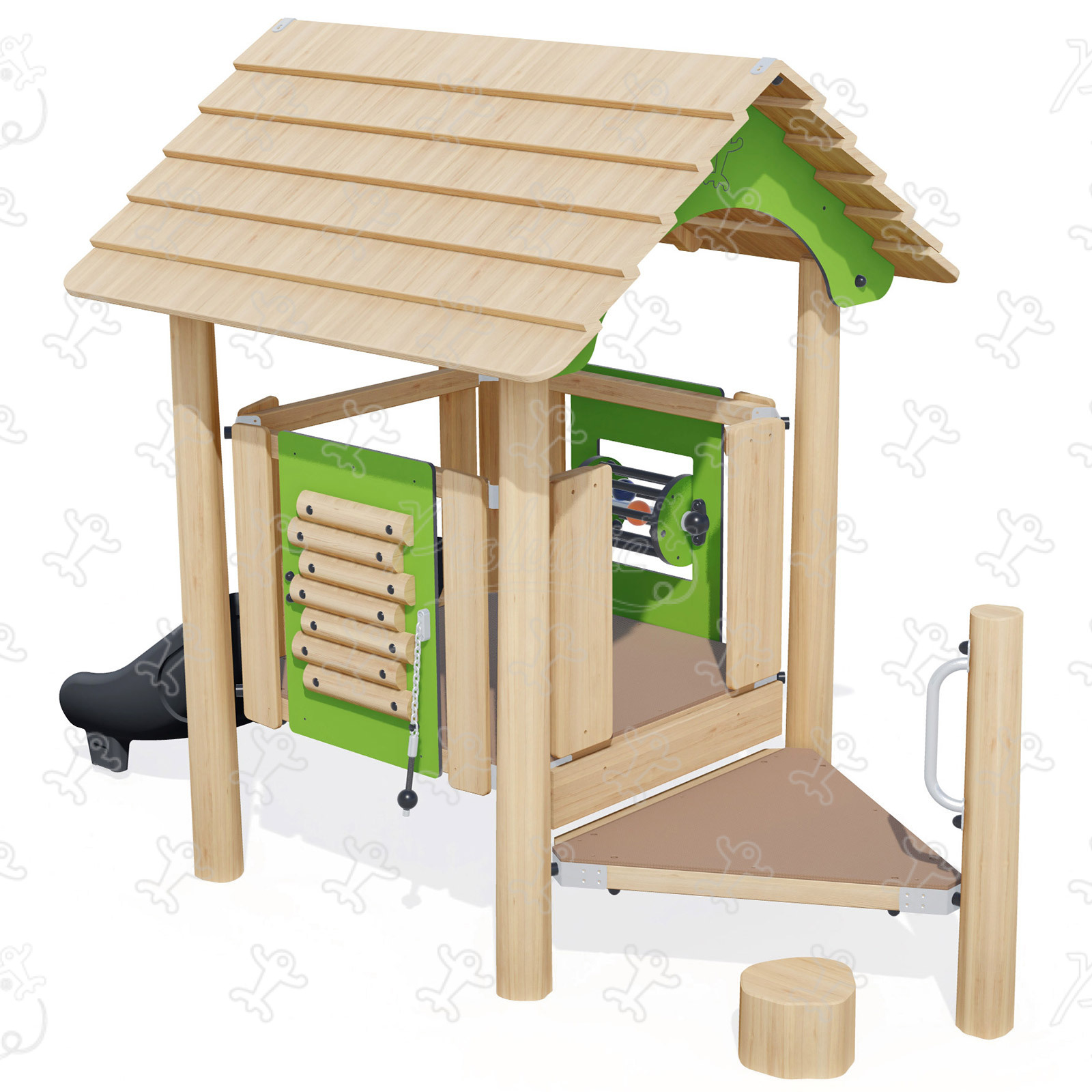 Musical playhouse - Wooden playhouse hut for children with slide and play panels - J49261®