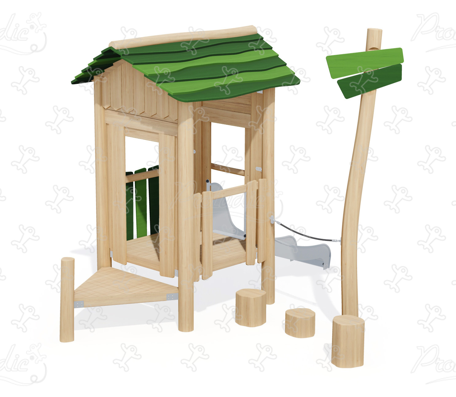Hut - Early childhood wooden playhouse with slide - J49412®