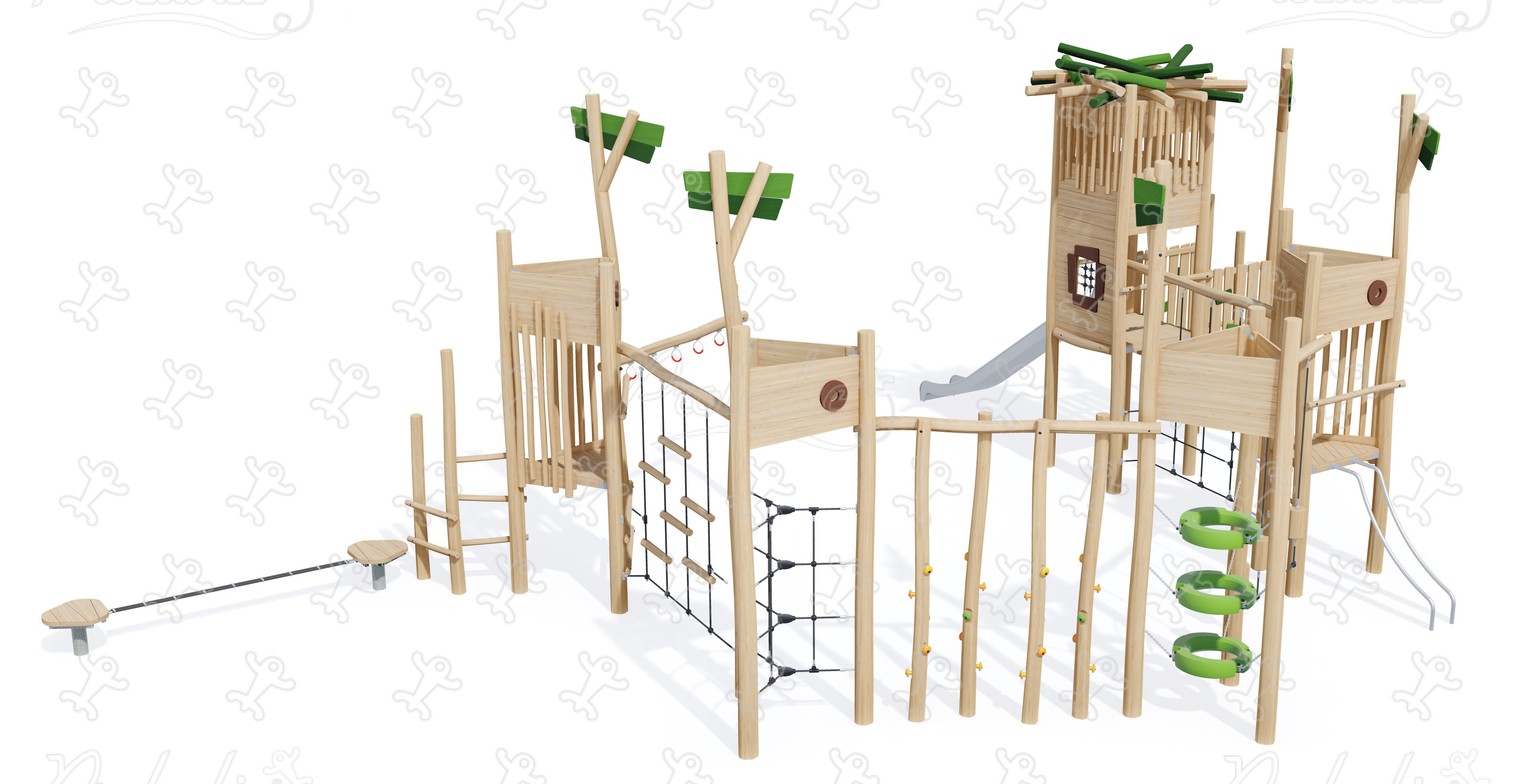 Cabin Trail - Giant playground equipment with balancing trail, net elements, tower, and slide - J49415®