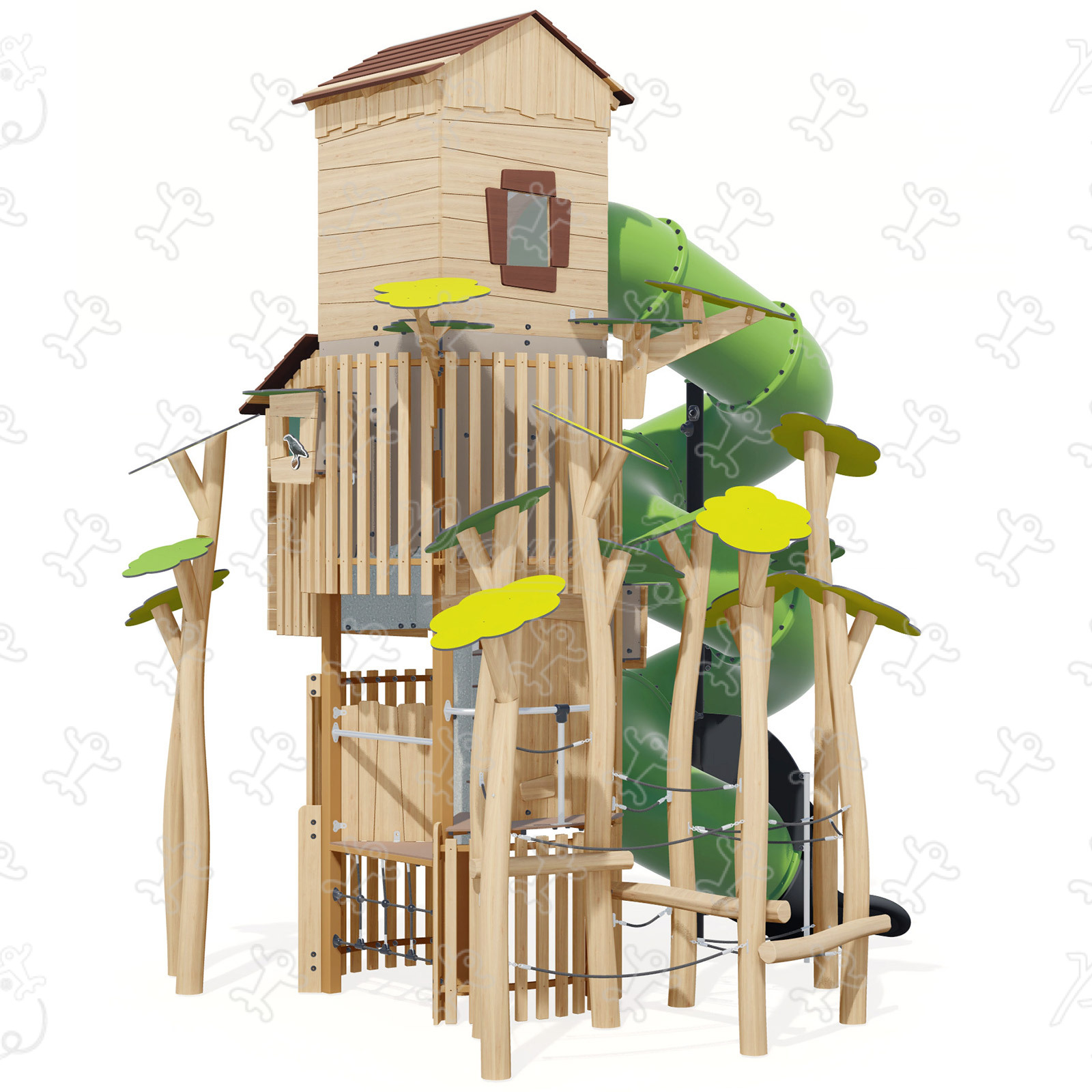 Observatory tower - Giant wooden play tower with polyethylene tube slide - J49417-P®