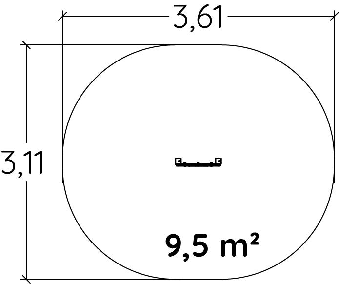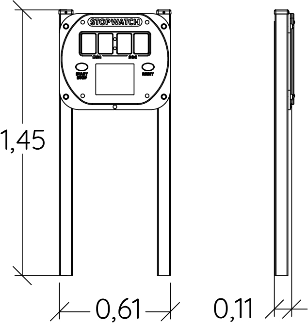The size of the module is: 0.61 m length, 0.11 m width, 1.45 m. high.