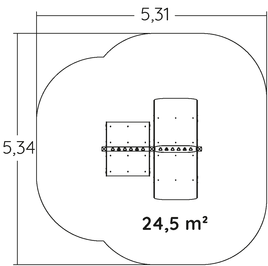 The size of the module is: 2.34 m length, 2.30 m width, 0.68 m. high. The free fall height (FFH) is 0.60 m.