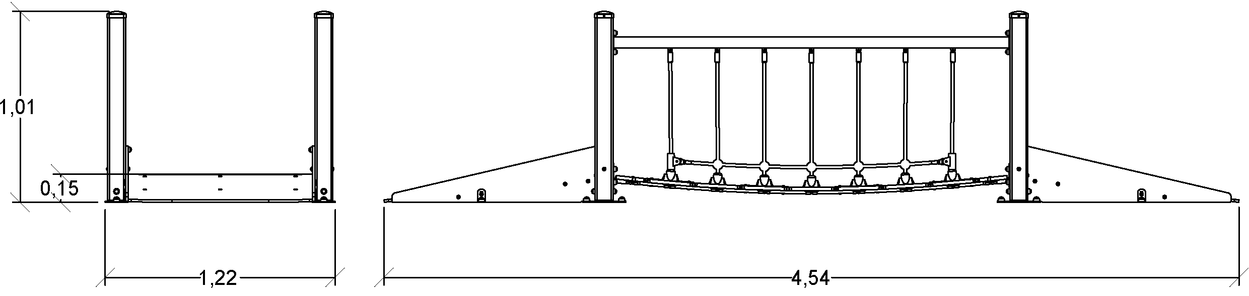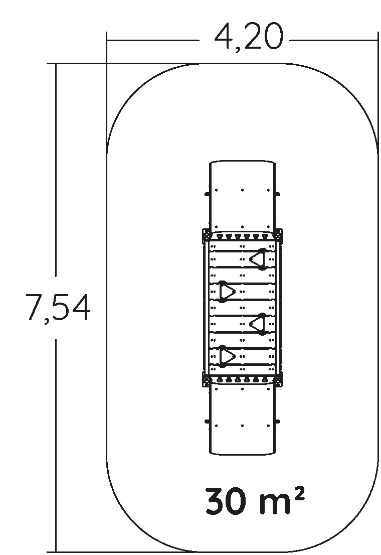 The size of the module is: 4.54 m length, 1.20 m width, 1.01 m. high. The free fall height (FFH) is 0.60 m.