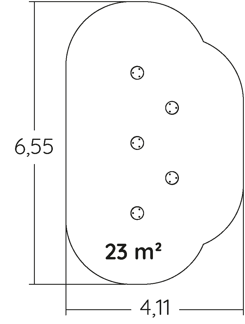 The size of the module is: 4.85 m length, 2.30 m width, 1.45 m. high. The free fall height (FFH) is 0.60 m.