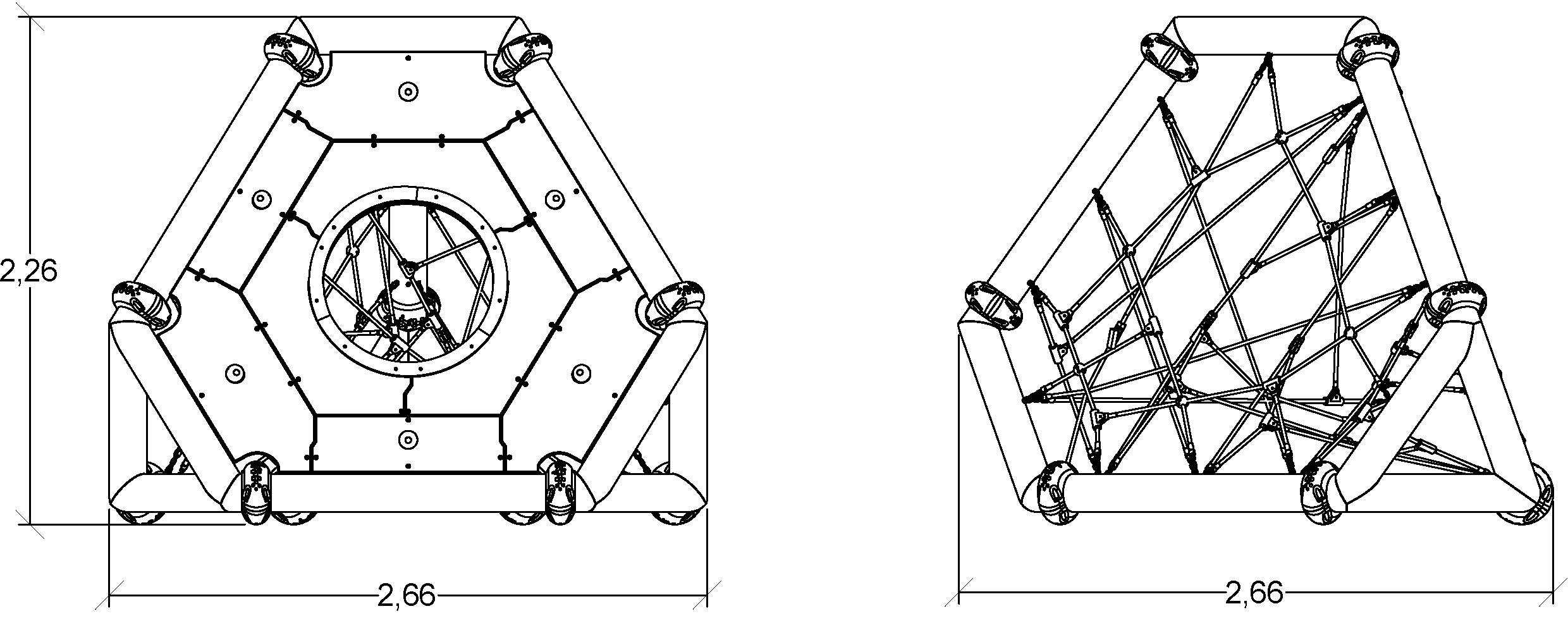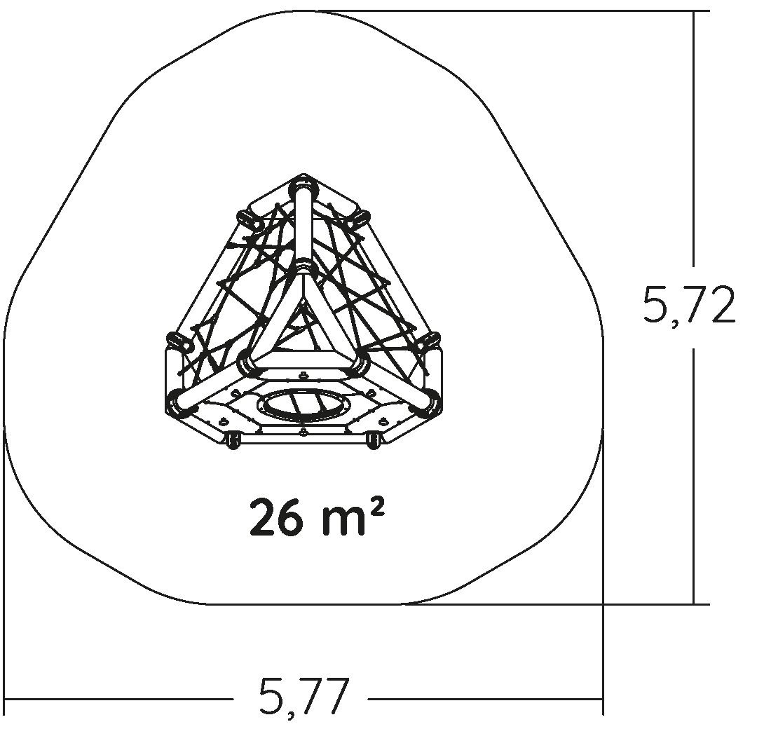 The size of the module is: 2.66 m length, 2.66 m width, 2.26 m. high. The free fall height (FFH) is 2.00 m.