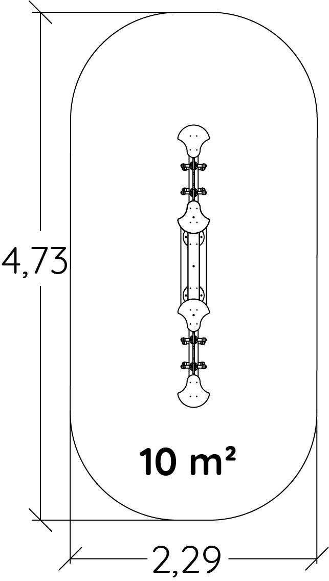 The size of the module is: 2.63 m length, 0.30 m width, 0.85 m. high. The free fall height (FFH) is 0.75 m.
