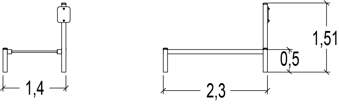 The size of the module is: 2.30 m length, 1.40 m width, 1.51 m. high. The free fall height (FFH) is 0.50 m.