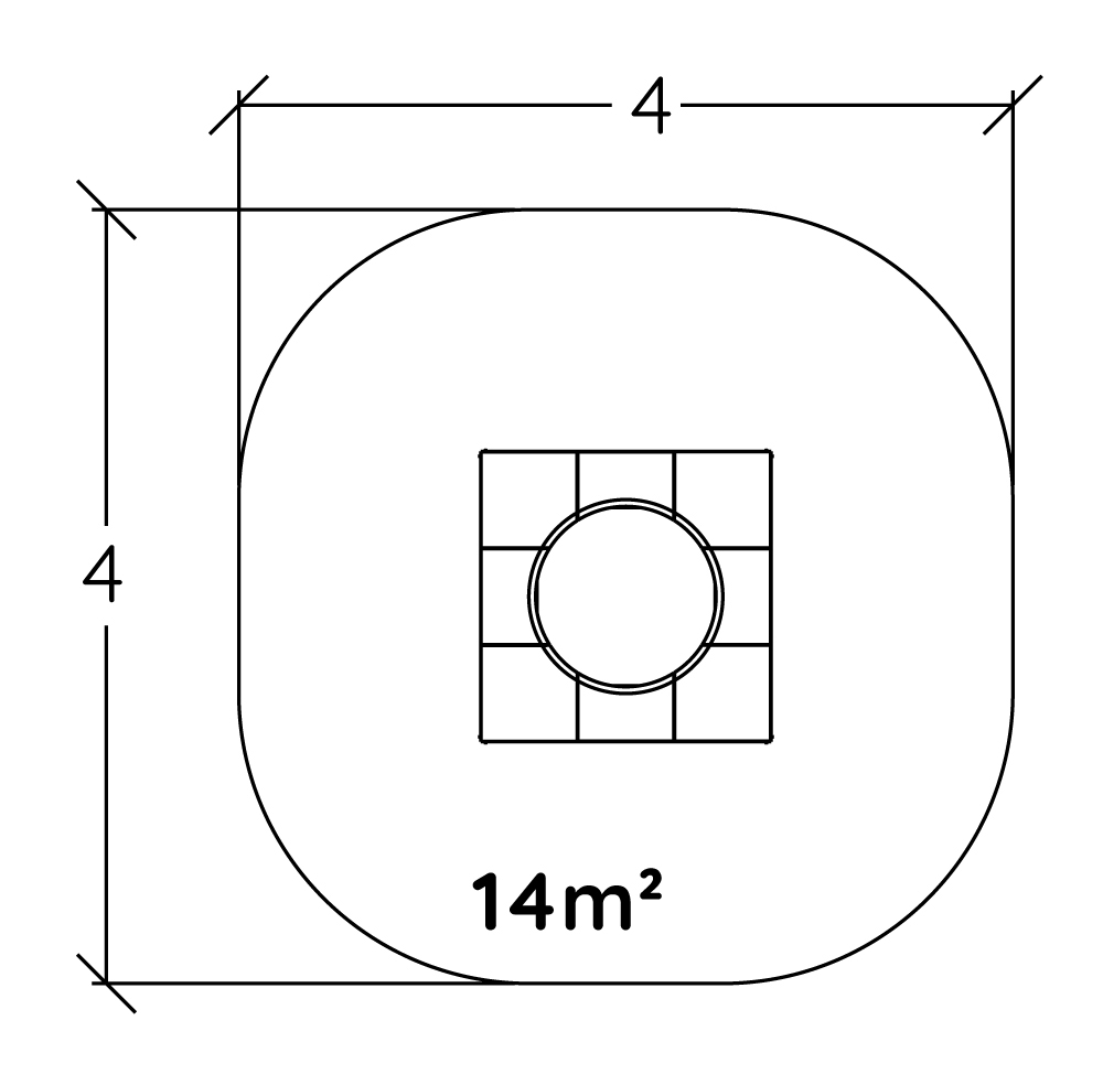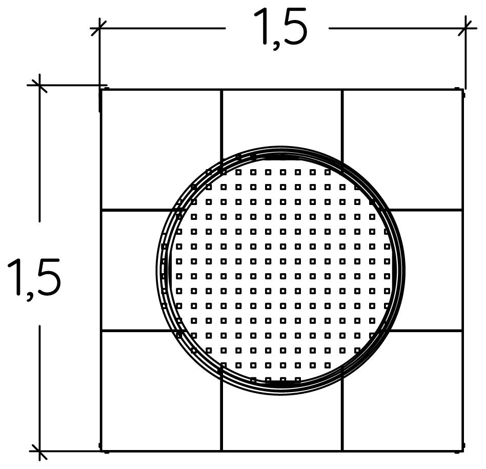 The size of the module is: 1.50 m length, 1.50 m width, 0.03 m. high. The free fall height (FFH) is 1.00 m.